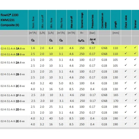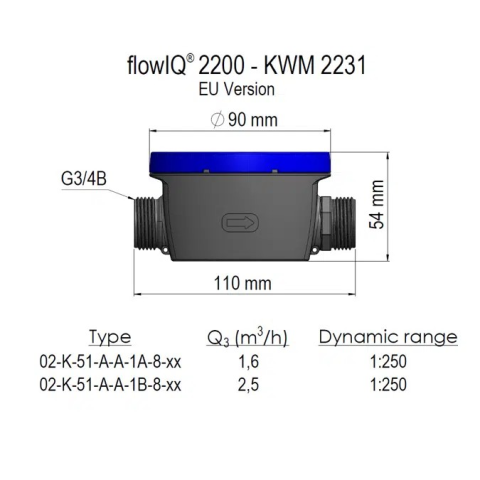 Q3 1,6m³/h - G¾B(R½) - 110mm - DN15 - PN16 - Komposit