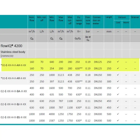 Specifikation Typ av vattenmätare Kallvattenmätare Q3 160 m³/h Anslutning vattenmätare Fläns Dimension DN125 Bygglängd 250mm Material Rostfritt stål Tryckklass PN16 Batteri 2 x A-cell Litium Batteri Batterilivslängd Upp till 16 år M-Bus Trådlös med serialkabel för Pulse Output och Gateway -